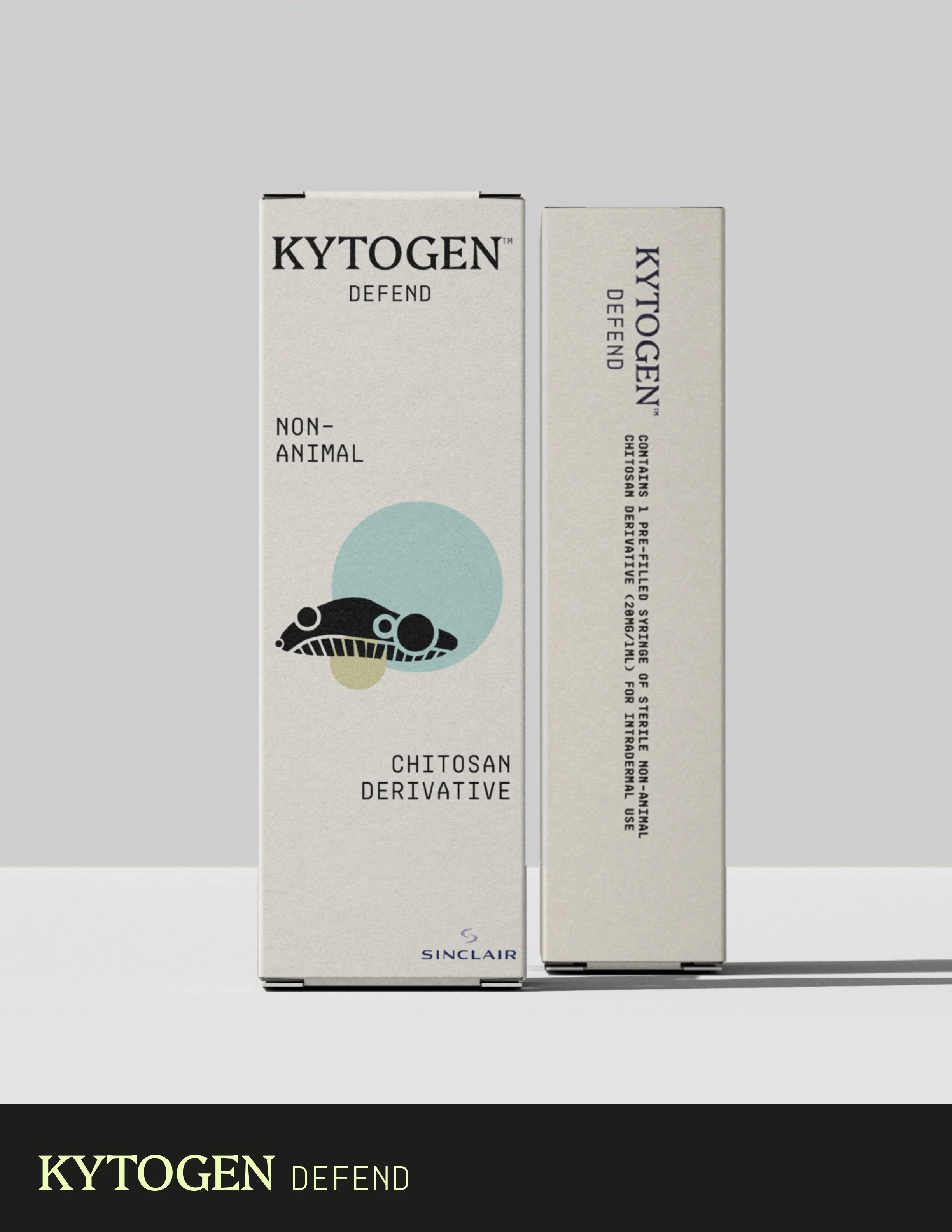 Kytogen™ Defend is a sterile gel intended to be injected intradermally for superficial tissue filling, and for the enhancement of skin hydration, skin quality and skin aspect. It is classed as a device.